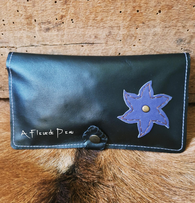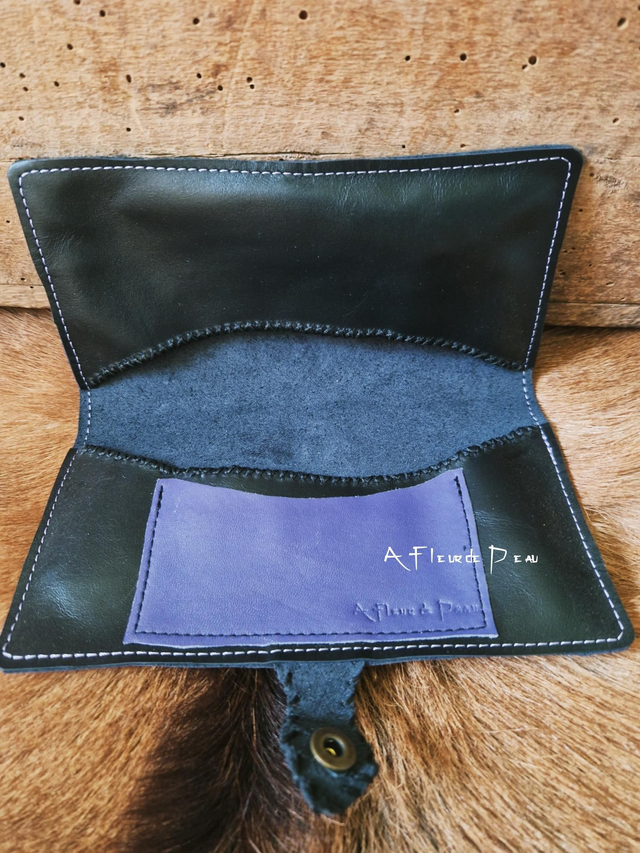 Étui pour chéquier réalisé dans un cuir souple de vachette avec compartiment pour carte de crédit, carte de fidélité...