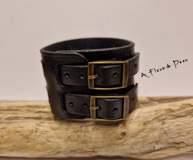 Bracelet de force réalisé dans un cuir de bovin rigide.